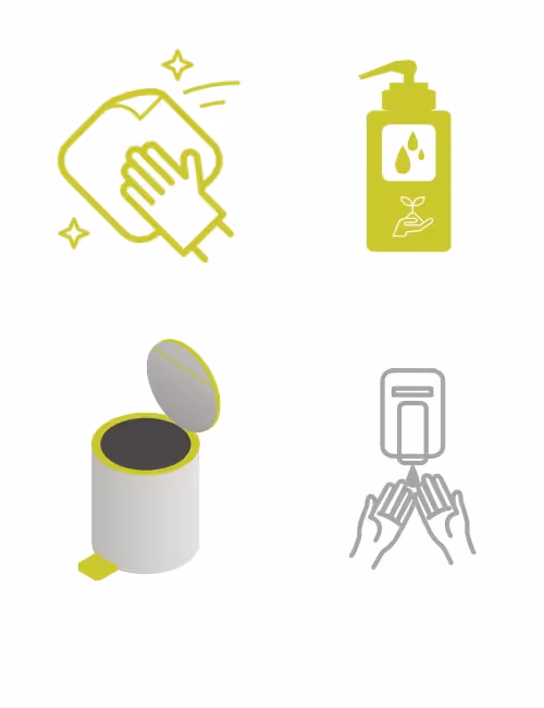 - Nettoyez au moins 2 fois par jour les points de contact identifiés dans les toilettes : poignée de porte, lunette wc, distributeur de papier toilette,…