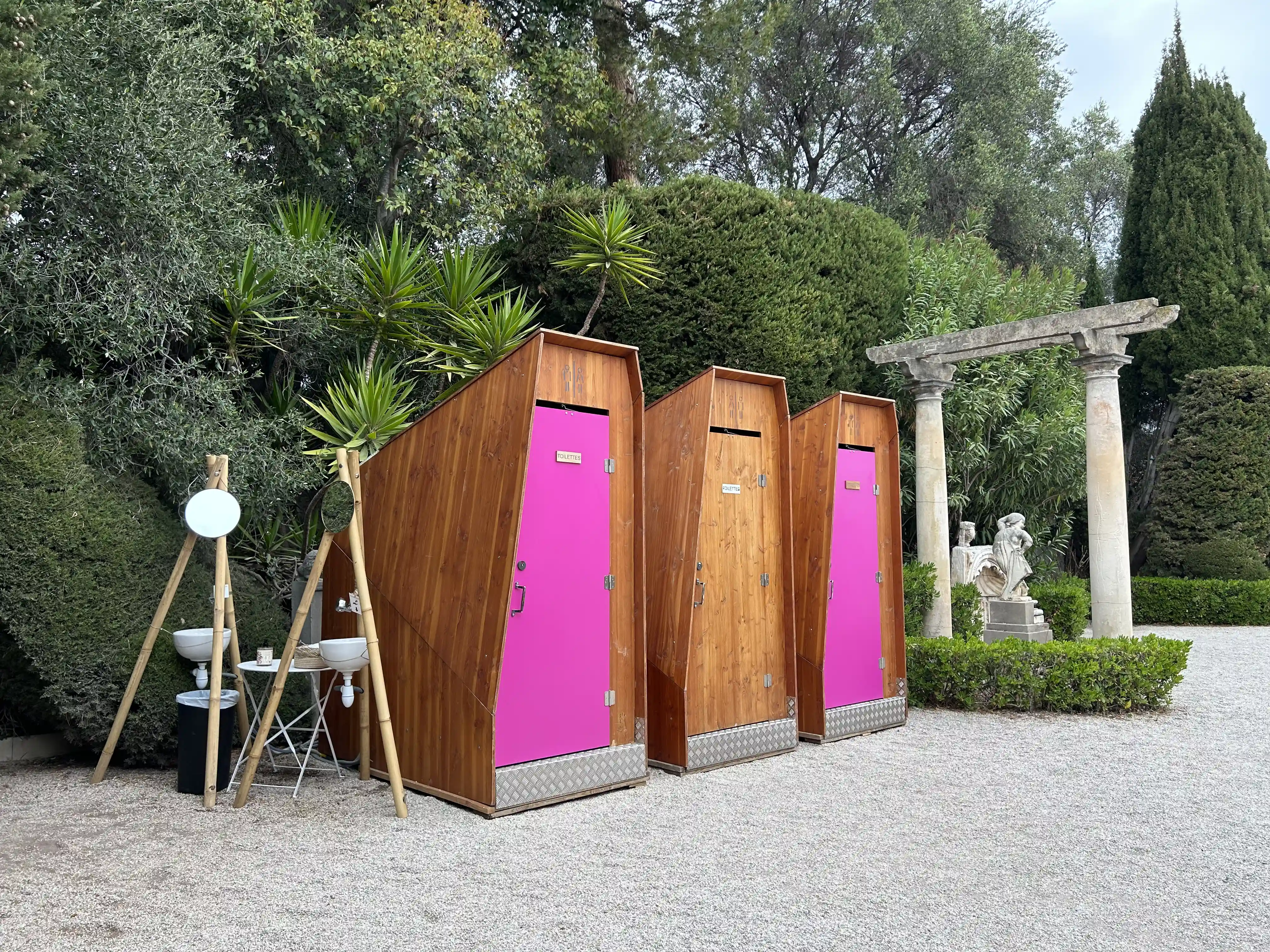 Pour cet évènement, la Villa Ephrussi de Rothschild avait besoin de sanitaires complémentaires élégants, en accord avec le magnifique jardin paysager.