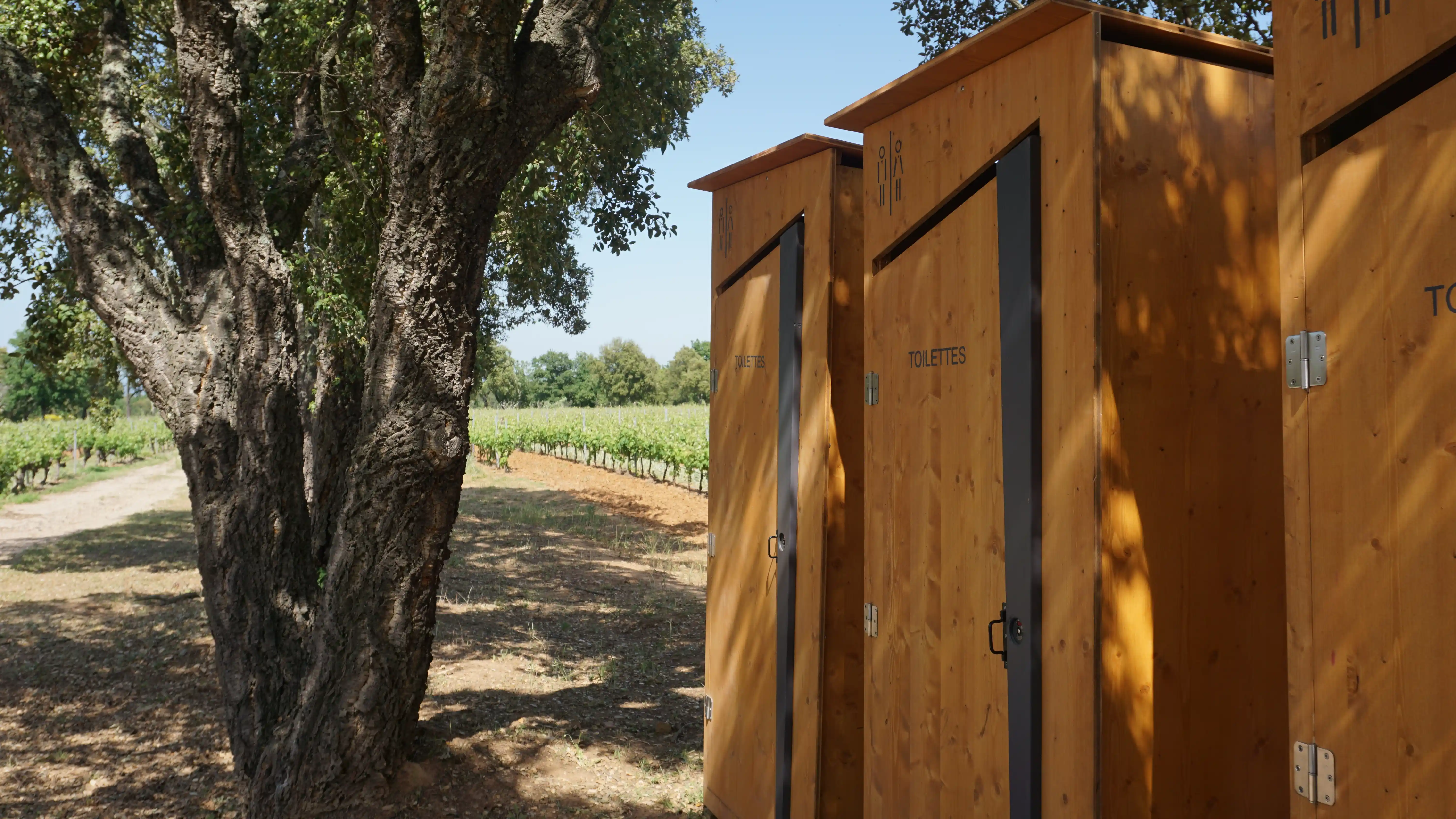 Les vignerons de l'appellation Côte de Provence organisent une balade gourmande au Château Réal d'Or. Nos toilettes sèches en bois brut s'intègrent parfaitement dans ce cadre naturel.
